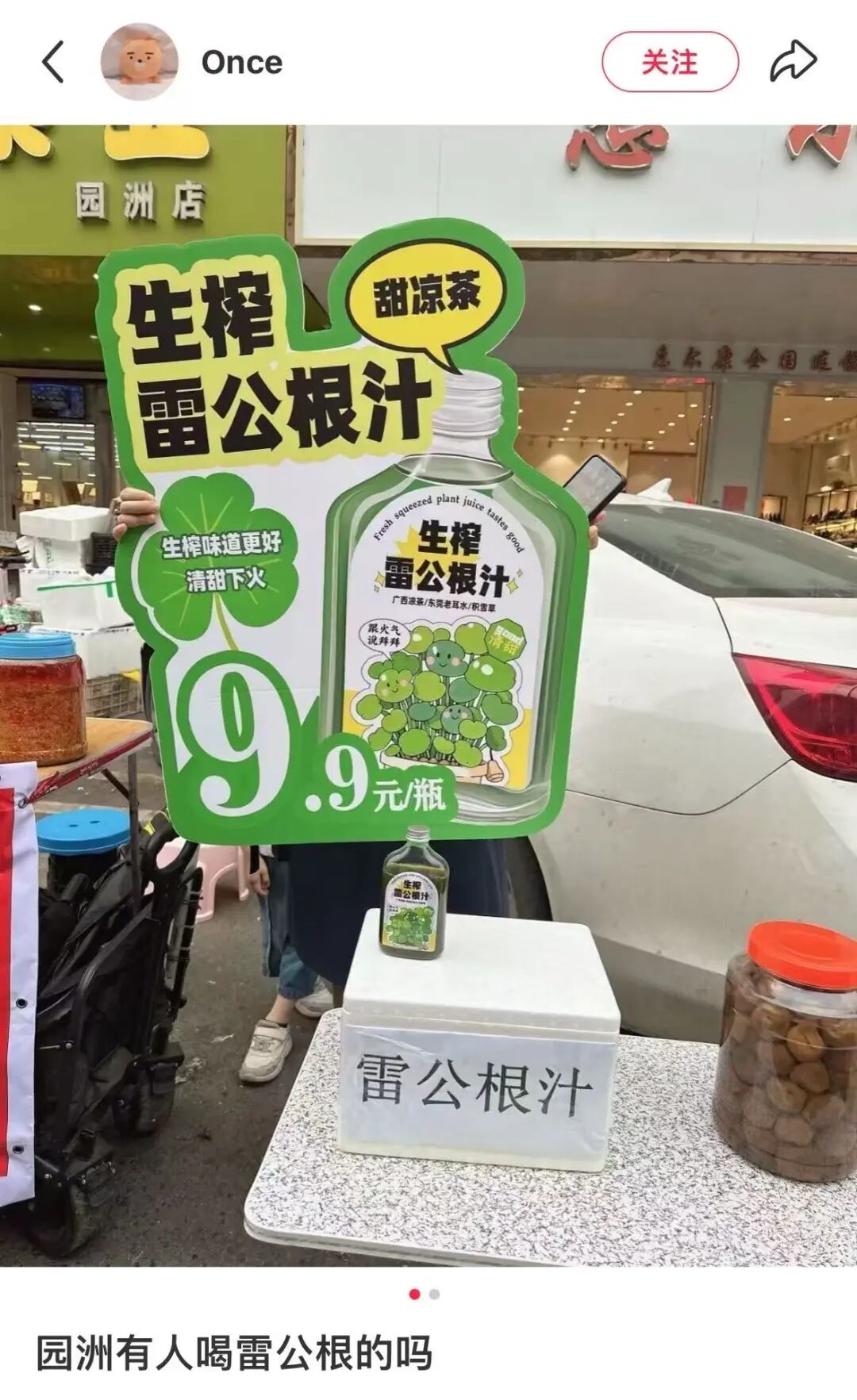 就连街头摆摊的饮品车也没放过这波热度,生榨雷公根汁、雷公根撞奶等产品纷纷亮相。因其具有清爽解腻的属性,也成为了不少消费者的“续命水”。尤其适合搭配火锅、烧烤等重口味餐饮场景。