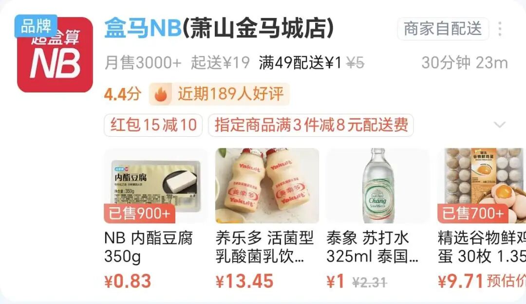 9月17日,刺猬公社在测试中发现,此前由盒马NB改名而来的超盒算NB,已开始陆续上线外卖服务。其中,杭州的部分超盒算NB门店,包括晴川大厦店、萧山金马城店等,已正式上线淘宝闪购。