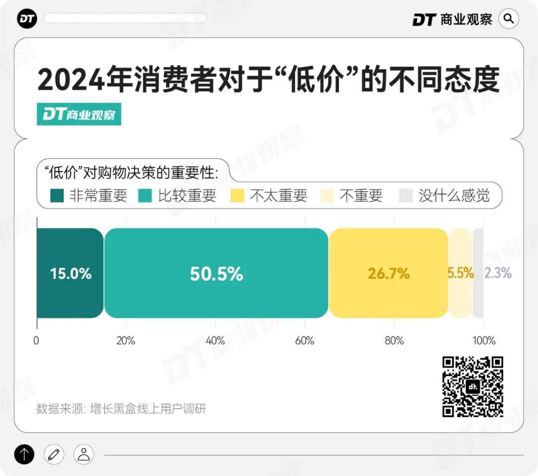 增长黑盒的消费者调查显示,2024年有65.5%的消费者认为,“低价”在自己选购商品的过程当中扮演了比较重要或非常重要的角色。