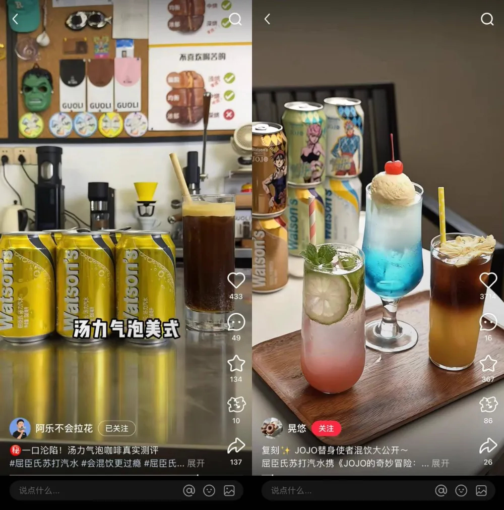 随着屈臣氏苏打在咖啡创新领域持续发力,并通过咖啡连锁门店合作精准种草饮咖人群,从社媒搜索关联内容来看,其旗下的多款产品已经在咖啡爱好者中建立起了讨论度,并逐渐在咖啡界树立起了“专业混饮”的品牌印象。