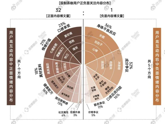 社媒数据显示,健康热点已成为现制茶咖消费者关注的主流趋势,其中“身体不良反应”和“成分争议”是引发用户负面反馈的主要风险点,相关负面情绪内容在高互动话题中占比高达36%。