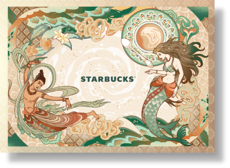 9月23日起,星巴克敦煌首店——益旺国际店将化身敦煌主题店。敦煌的灿烂美景与咖啡香在此融合,与千年文明共舞。现代风格的飞天形象,与身着飞天彩锦的塞壬相会,二者手执咖啡树披星而来,在鱼尾与云纹的簇拥下,于一座如咖啡宇宙般的时空中相遇。皓月当空、彩云呈祥,寓意着传统文化与现代生活的交融碰撞与和谐共生,呈现出一派华美古朴、又充满艺术张力的独特第三空间。与此同时,全国100余家主题陈列店也将一展敦煌风姿。