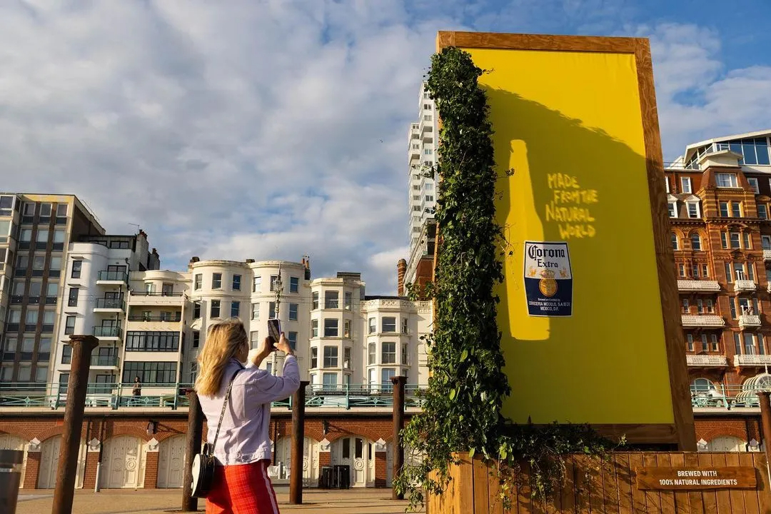 2022年,为庆祝英国夏令时的开启,科罗娜在布莱顿海滨推出了一面完全依托自然力量驱动的“日落光影”互动广告牌。