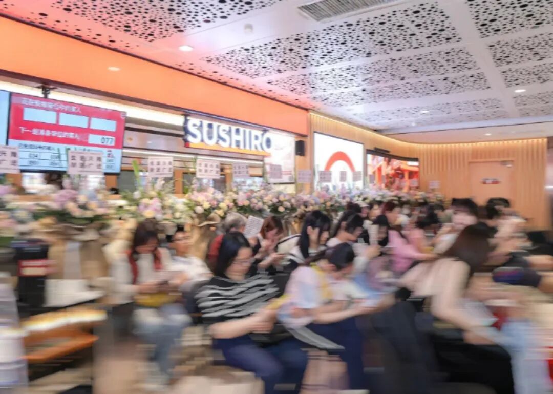但另一边,一线城市的商场里却出现了新的排队王:如果你在周末前往回转寿司店滨寿司或者寿司郎,很可能被门口的屏幕提示还要等两三个小时,去年8月寿司郎在西单大悦城开的北京首店,中午等候时间甚至一度超过10个小时;而如果你在工作日中午去一家叫肉肉大米的日式牛肉汉堡盖饭店,那可能排队到午休结束,都还没能吃上一口饭。