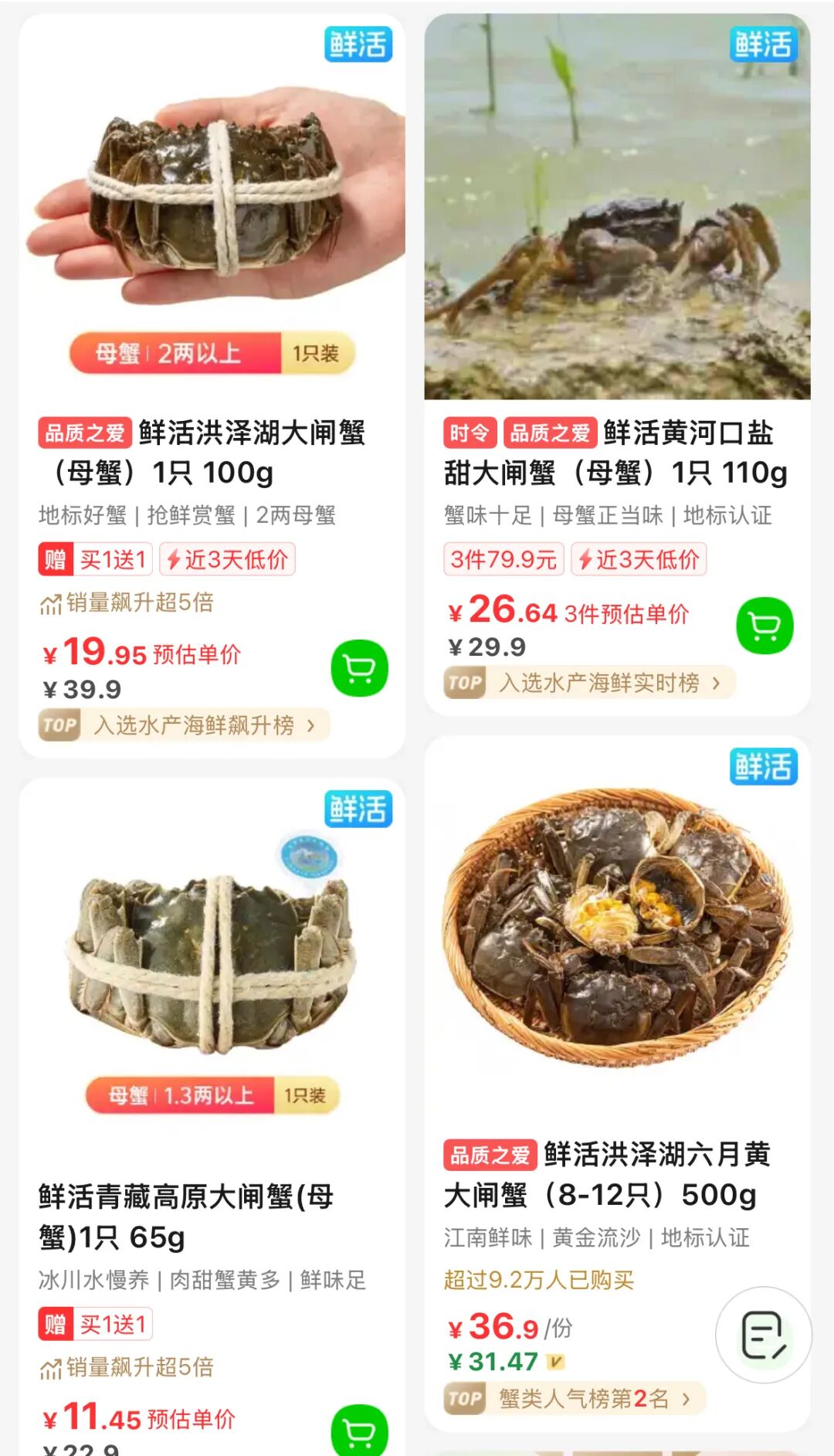 不仅有阳澄湖大闸蟹,还有同在江苏的洪泽湖大闸蟹,蟹身青壳白肚,有种“肤白貌美”的既视感,蟹黄呈半流质,已经售出超过690万只;